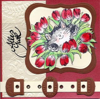 Wowzer! You colouring of those tulips is absolutely amazing. A fantastic card. I love the belt effect at the bottom too. Thanks for joining the Colour Create Challenge.